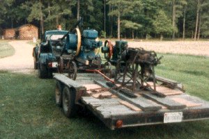 | Getting ready to take the engines to a show. Notice the feed grinder which will be driven by the engines. I borrowed the 49 Studebaker truck from a friend. | ![]() |